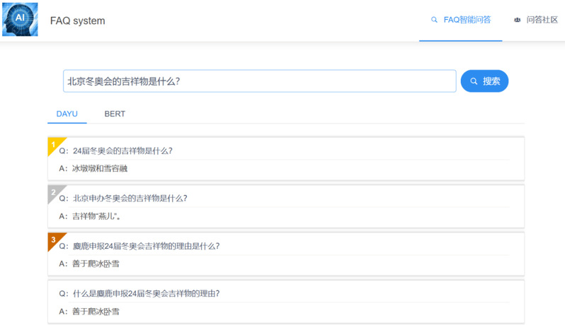 (2) 部署机器阅读理解(MRC)模型,该模型在DuReader+冬奥标注样本构成的数据集上训练。