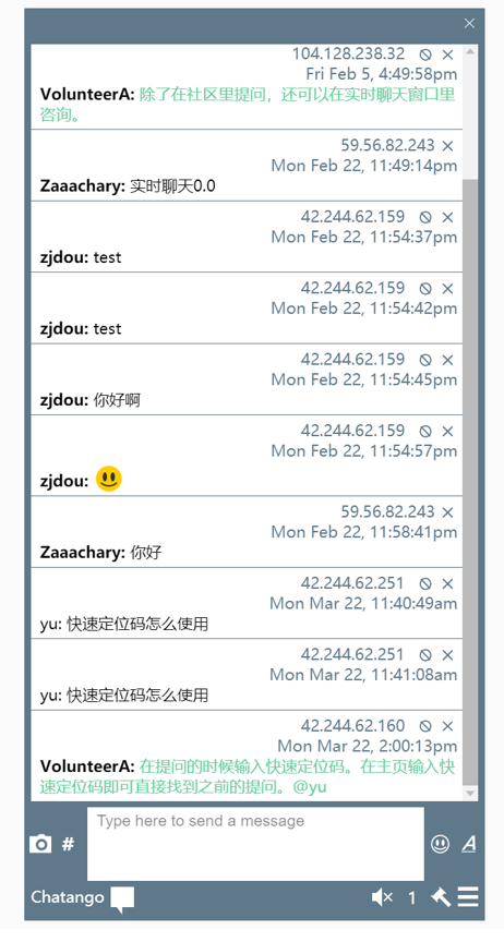 (4)采用chatango的第三方服务,用户可以在聊天室和志愿者进行实时沟通。(见图3)