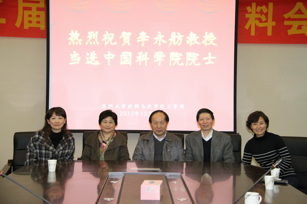 2013年12月14日下午,热烈祝贺李永舫教授当选中国科学院院士仪式在材料与化学化工学部会议室举行。朱秀林校长,人事处、学科建设办公室、科技处、国有资产与实验设备管理处和材料与化学化工学部等负责人以及李永舫院士来自全国各地的30多名学生一起参加了祝贺仪式。朱秀林校长首先代表学校热烈祝贺李永舫教授当选中国科学院院士,对李院士给予学校的信任和支持表示衷心感谢,并表示学校将继续全力支持李永舫院士开展工作,也希望李院士在学校工作顺利、愉快。